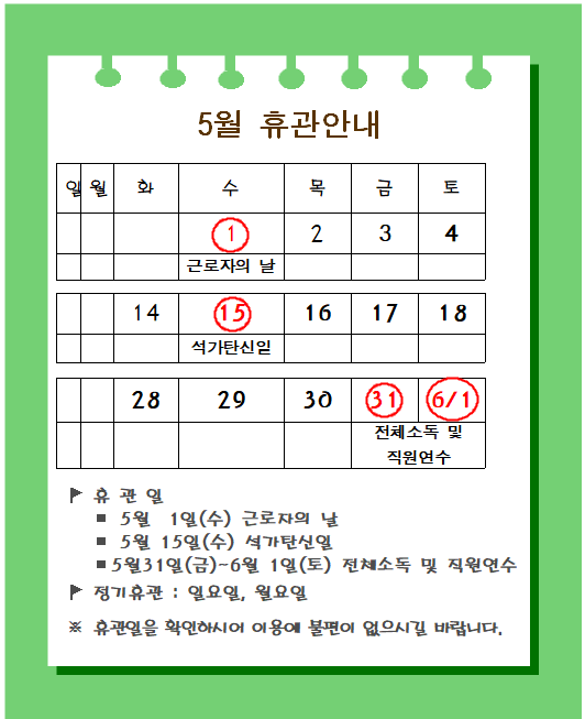 | 5¿ù ÈÞ°ü ¾È³» | |||||