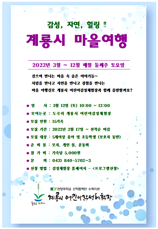 | 3¿ù °è·æ½Ã ¸¶À»¿©Çà(°øÁ¤¿©Çà) ½Åû¾È³» (À¯¾Æ¹× ÃʵîÇлý ´ë»ó) | |||||