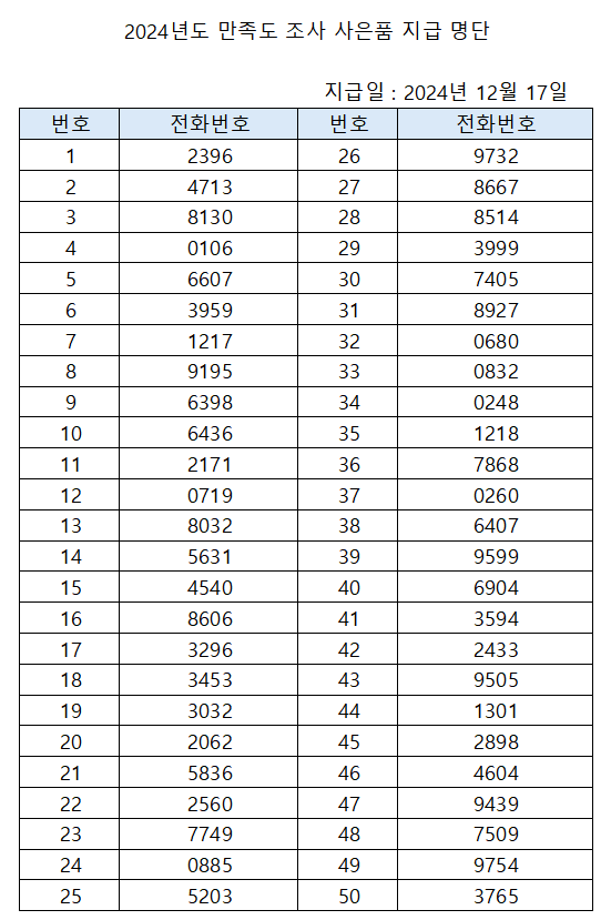 | 2024³â °è·æ½Ã ¾î¸°À̰¨¼ºÃ¼ÇèÀå ¸¸Á·µµ Á¶»ç »çÀºÇ° Áö±Þ ¸í´Ü | |||||
