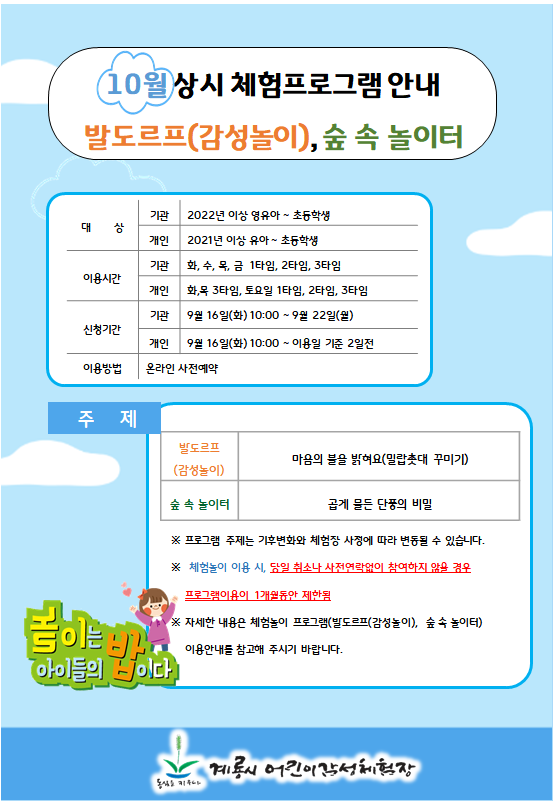 | 10¿ù üÇè³îÀÌ(½£¼Ó³îÀÌÅÍ, °¨¼º³îÀÌ)ÇÁ·Î±×·¥ ¹× Àç¹ÌÁø ³îÀÌÅÍ ¿¹¾à¾È³» | |||||