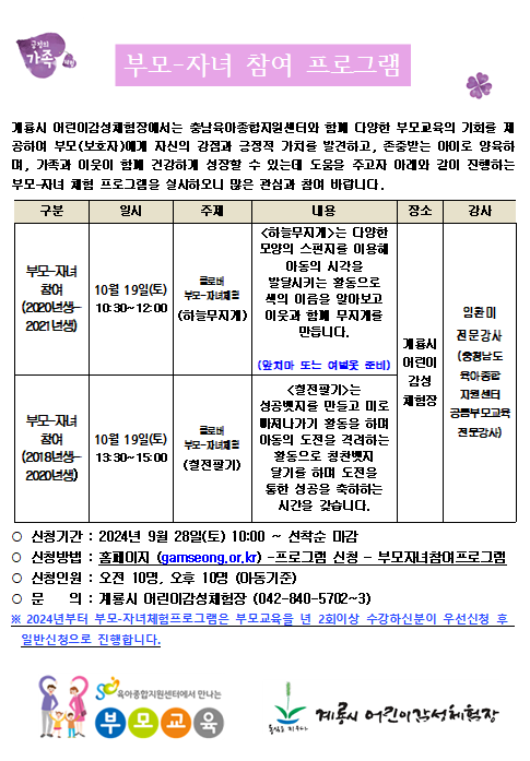 <10¿ù ºÎ¸ð-ÀÚ³à Âü¿© ÇÁ·Î±×·¥ ¾È³»(¿µÀ¯¾Æ)>