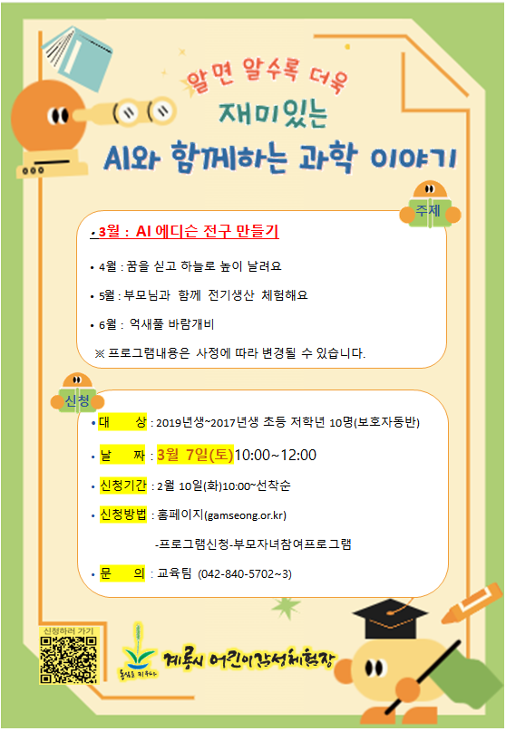| 3¿ù AI¿Í ÇÔ²²ÇÏ´Â °úÇÐÀ̾߱⠻çÀü¿¹¾à ¾È³» | |||