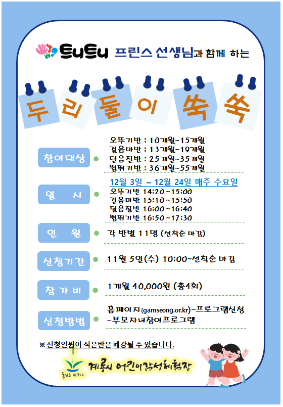 | °ÉÀ½¸¶¹Ý - µÎ¸®µÑÀ̾¦¾¦ ¿µ¾ÆÅëÇÕÇÁ·Î±×·¥(Æ®´ÏÆ®´Ï) »çÀü¿¹¾à | |||